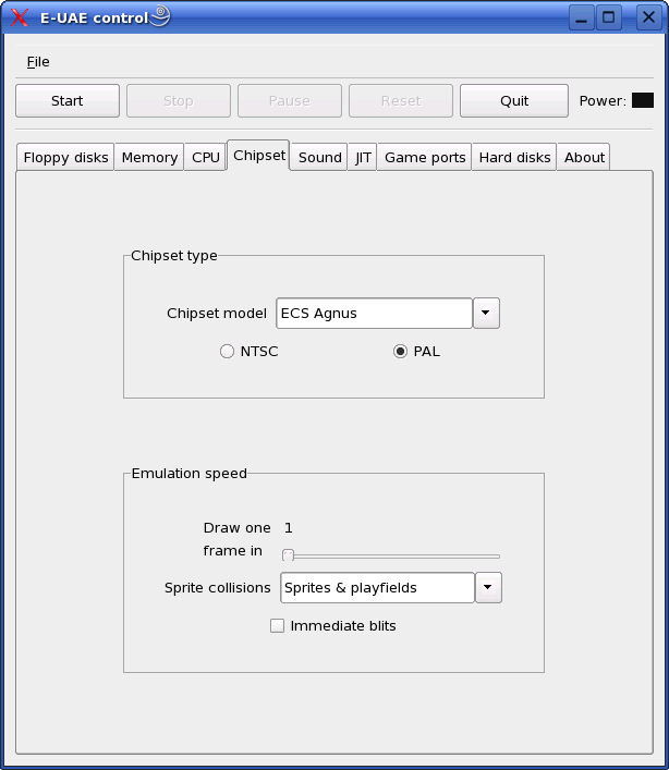The chipset configuration will determine features of the graphics and sound facilities provided on the emulated amiga.