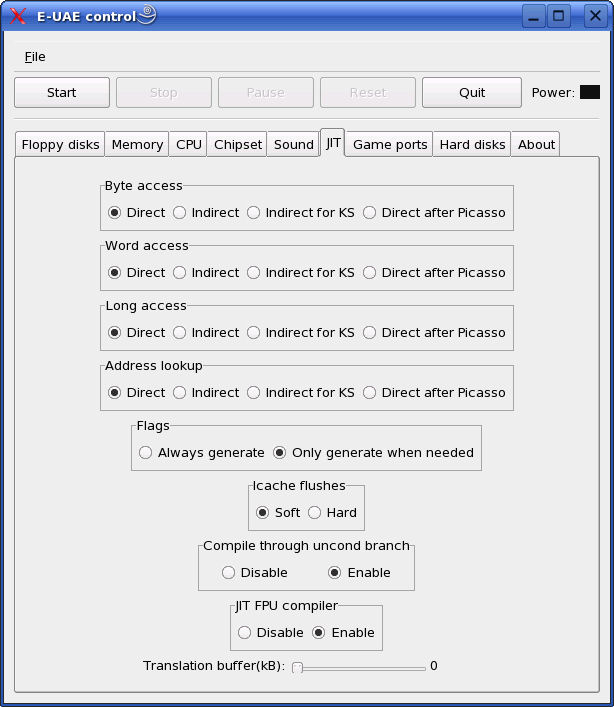 Translation buffer (KB) - Sets size of buffer for JIT to use.